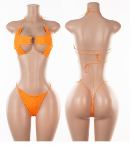 Rhinestone Bikini Thong Set w/Cage Teddy