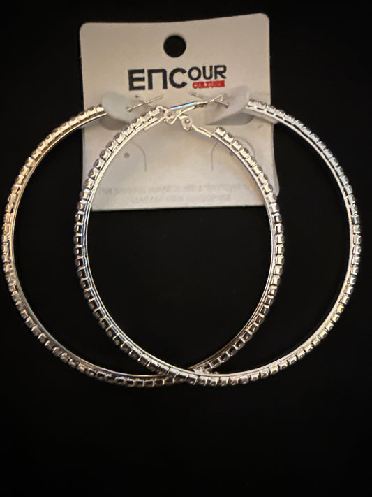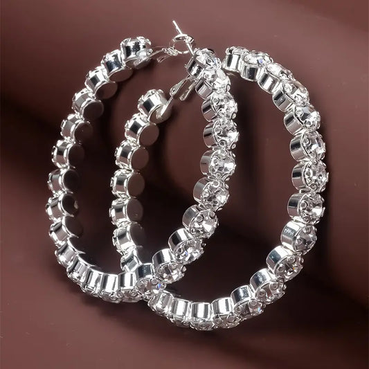 Rhinestone Hoop Silver Color Earrings