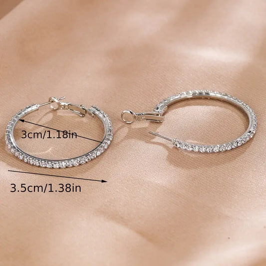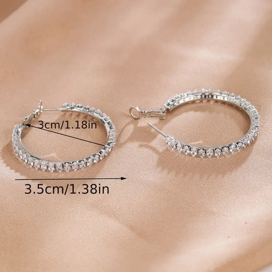 Luxury Full Circle Rhinestone Hoop Silver Color Earrings