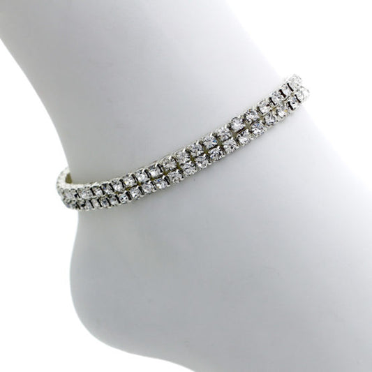 8322 2 Row Silver Rhinestone Anklet