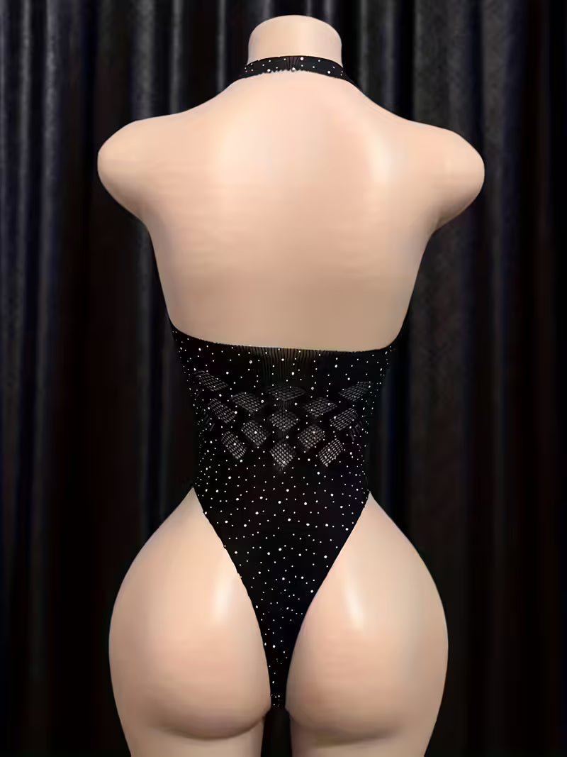 Slip into pure edge with this show-stopping fishnet bodysuit that's ready to turn heads. Crafted from stretchy black fishnet, it hugs your curves in all the right ways while the dazzling rainbow rhinestones scattered across the abdomen add serious sparkle and attitude. One-size-fits-most design means less thinking and more doing. Whether you're hitting the club, rocking a festival, or making a statement at your next night out, this bodysuit delivers confidence with a side of glam. Layer it, wear it solo, or make it the centerpiece of your boldest look yet.